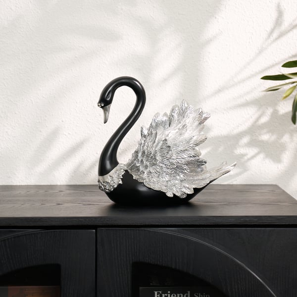 2-Piece Resin Swan Figurines – Elegant Black & Silver Swan Decorative Storage Set