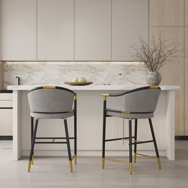 Cranis Series Modern Velvet Counter Stools with Upholstery Grey