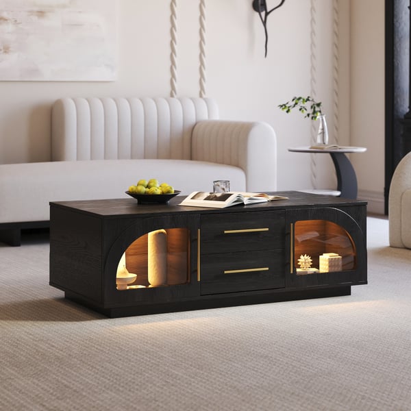 Arune 1200mm Arched Glass Doors Coffee Table with Storage and LED
