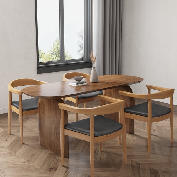 Oval Dining Table & Curved Back 4 Dining Chairs Upholstered Leather Solid Wood Top