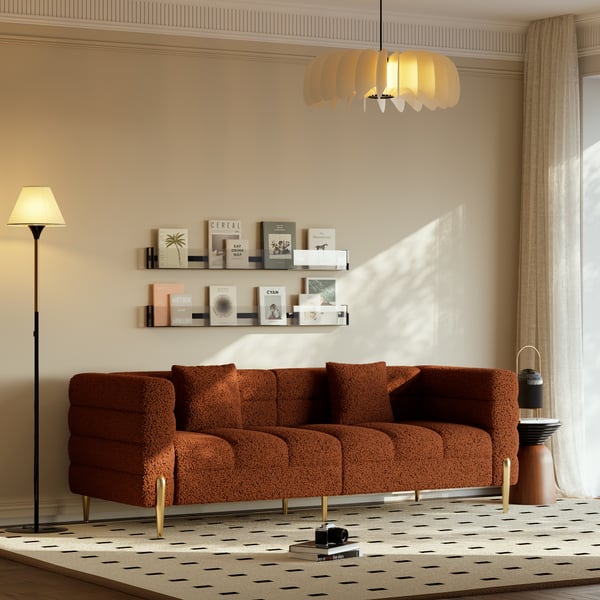 Aurora 2000mm Boucle Fluted Sofa with Gold Legs & Pillows