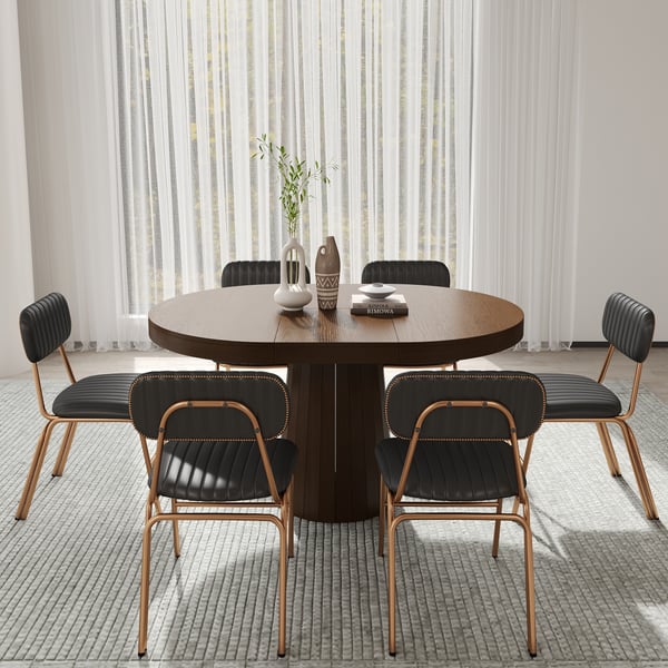 1000mm Modern Round Dining Table for 4 Walnut Solid Wood Tabletop Pedestal Base