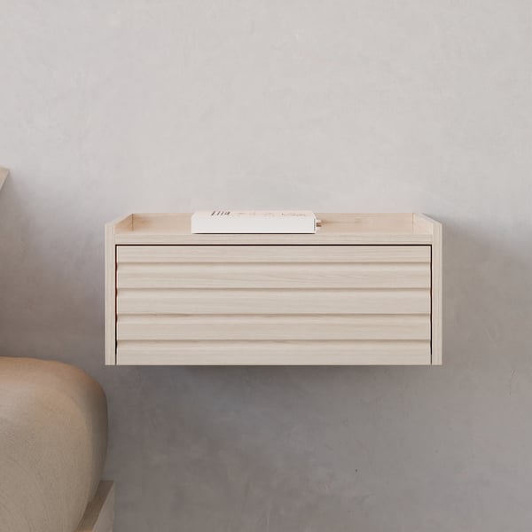 Ash Wood 2-Drawer Bedside Table with Faux Travertine-Top