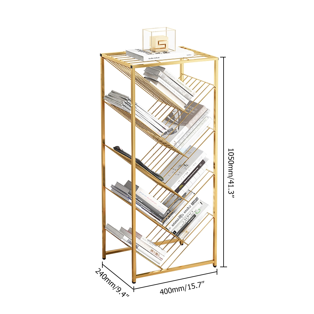 Featuring the clean-lined silhouette, this bookcase provides an exquisite and eclectic accent that fits into any decor. It offers ample storage to display your favorite books. Constructed from premium metal, it ensures sturdy support and stability. Perfect for your bedroom or living room.- Material: Metal- Finish: Gold- Overall Dimensions: 15.7"L x 9.4"W x 41.3"H (400mmL x 240mmW x 1050mmH)- Assembly Required: No- Product Care: Just wipe clean.