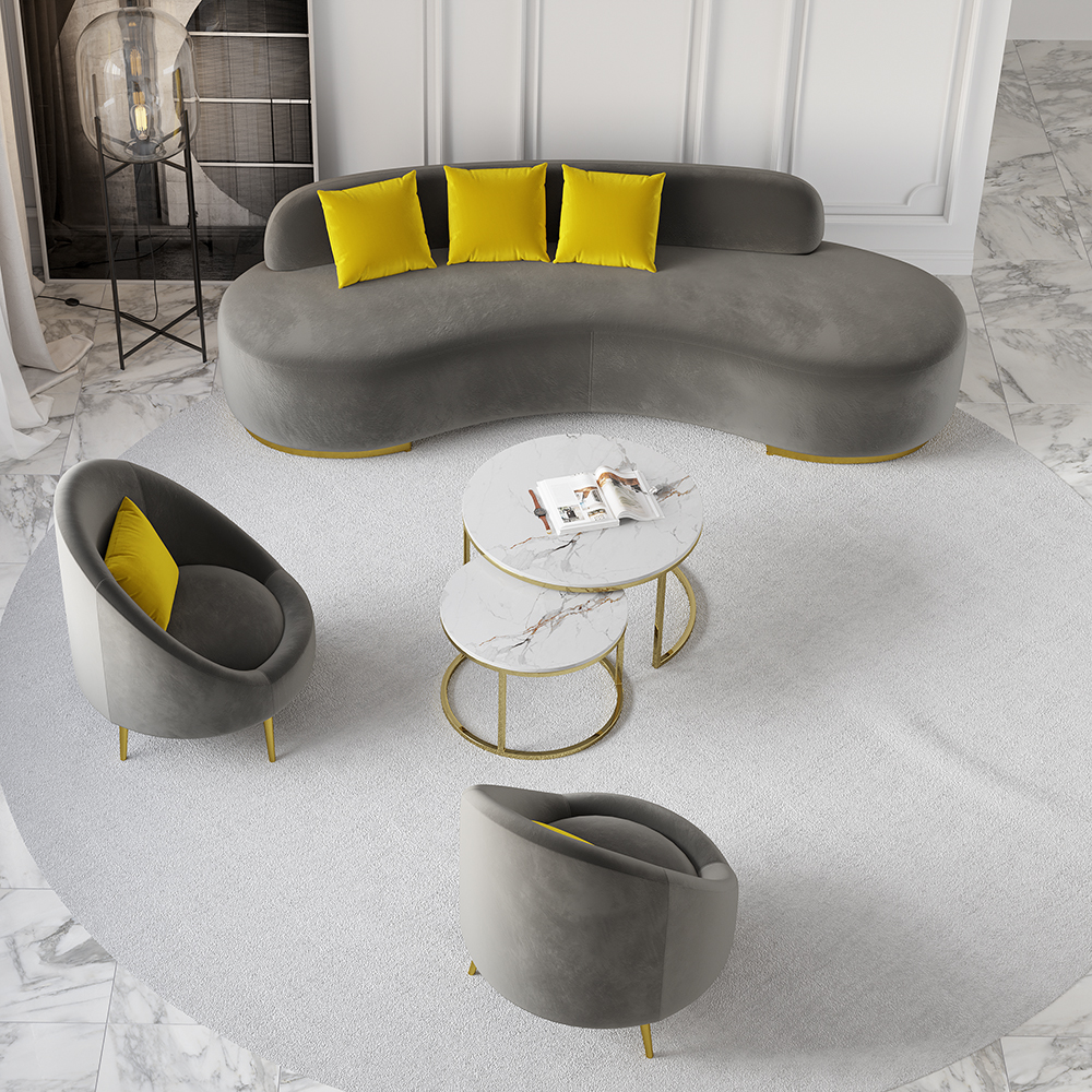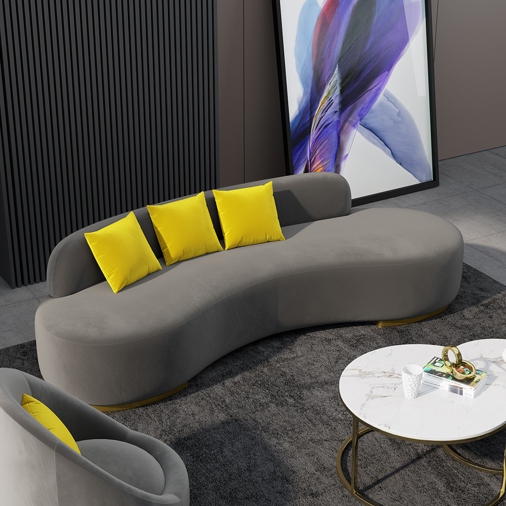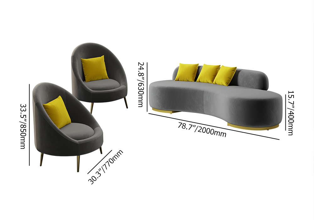 This curved sofa brings elements of both style and function into your home. It features a 3-seater and 2 accent chairs. The soft upholstery offers the ultimate comfort. Use it in a living room or entertainment area. It will give any area an updated and refreshing look while providing extra seating space for kids or guests.
