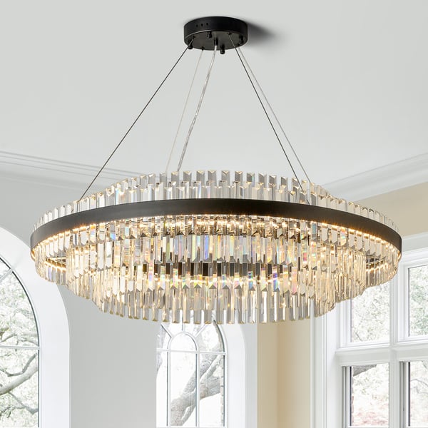 Fixedo Modern Tiered Crystal LED Chandelier in Black Light